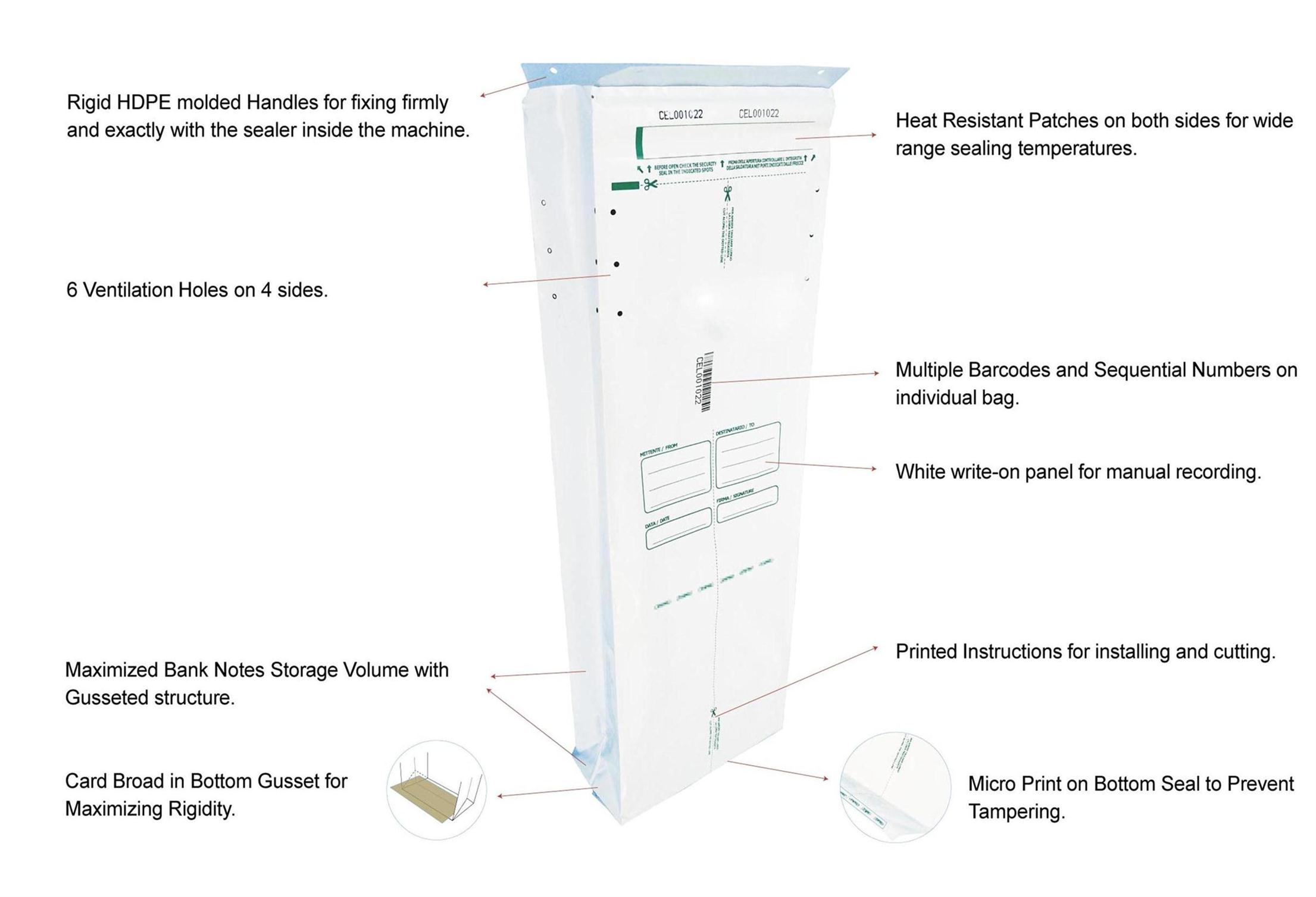 This ATM Cash Security Bags are designed for cash deposit collection with auto sealing to secure the cash from any manual handling.
